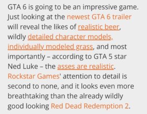The issue isn’t that games cost money to make – it’s that studios have lost all sense of proportion and efficiency, then passed those inefficiencies on to consumers while pretending it’s about “content value.” Just look at the above screenshot, where Grand Theft Auto VI is being praised for individually modeled grass and freaking butts. Your next GTA will be more expensive because some pervy developer wanted to make coomer bait.